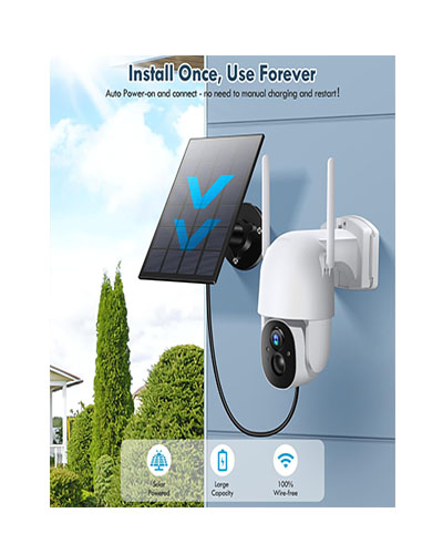 • Solar Powered & Auto Power-on – Our cameras for home security is equipped with 25% high conversion rate monocrystalline silicon solar panel and built-in large capacity rechargeable battery. 100% Wireless! Just place it in direct sunlight to charge. When the security cameras is powered off, after the solar panel is charged to a certain amount of power, it will auto turn on and connect. No need to manual charging and restart!
