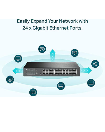 • 𝙊𝙣𝙚 𝙎𝙬𝙞𝙩𝙘𝙝 𝙈𝙖𝙙𝙚 𝙩𝙤 𝙀𝙭𝙥𝙖𝙣𝙙 𝙉𝙚𝙩𝙬𝙤𝙧𝙠: 24 port of 10/100/1000Mbps RJ45 Ports supporting Auto Negotiation and Auto MDI/MDIX